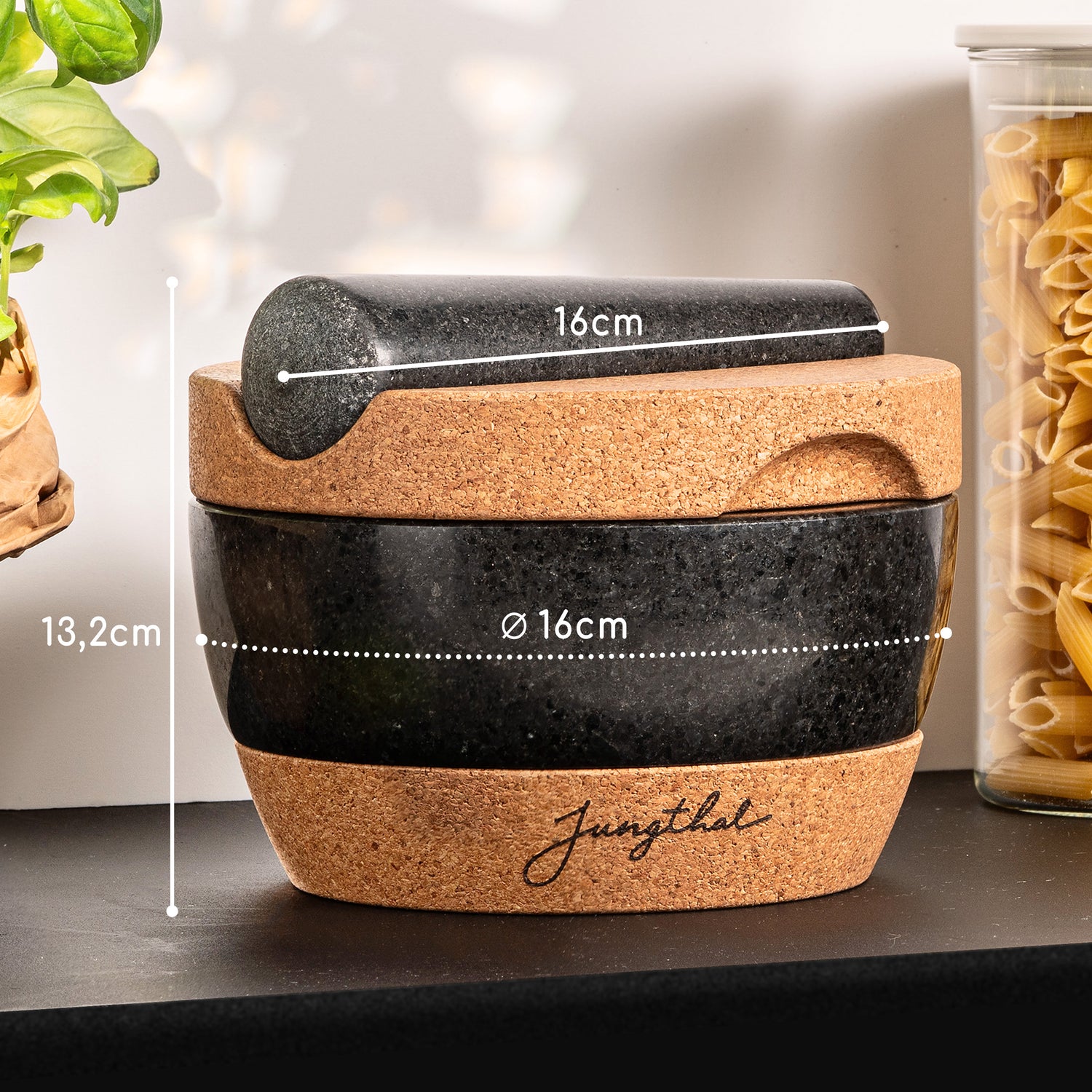 Massiver Naturgranit, warmer Kork und ein Design, das mitdenkt: Der JUNGTHAL Mörser ist kein gewöhnlicher Küchenhelfer. Er ist ein Werkzeug für Menschen, die Aromen bewusst erleben, Zutaten kontrolliert verarbeiten und Wert auf Qualität legen, die bleibt.