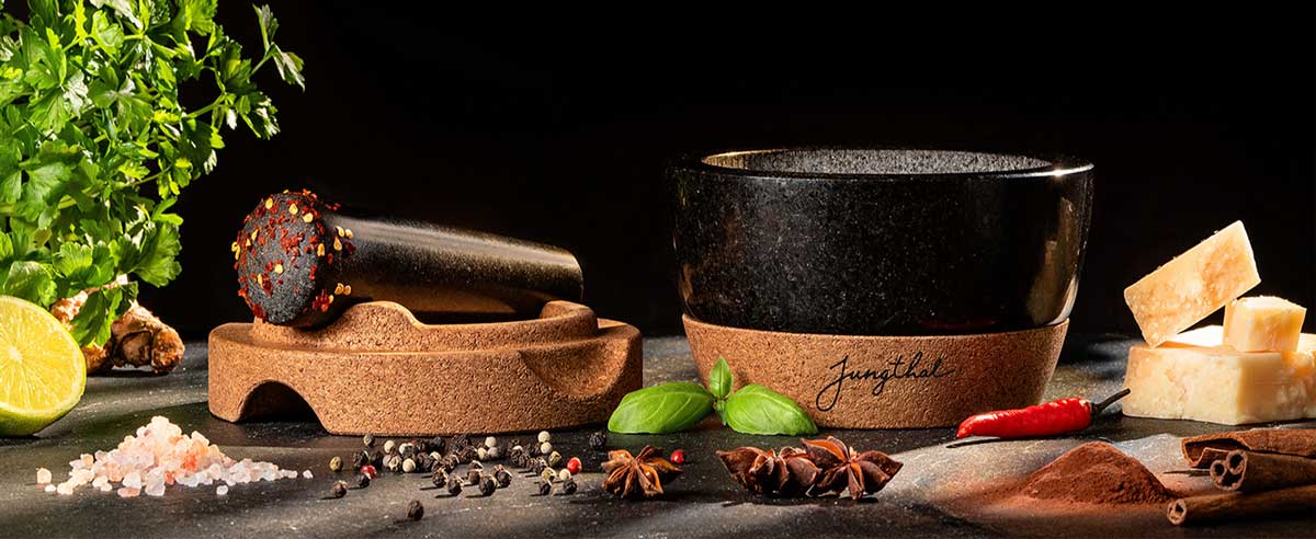 Der JUNGTHAL Mörser ist mehr als ein Küchenhelfer. Er ist eine Einladung, langsamer zu arbeiten, bewusster zu würzen und Geschmack neu zu entdecken.
